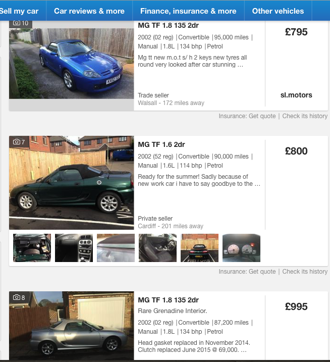 _________________ MGF VVC, Flame Red, LHD, 4.4.1997 TF 135 Monogram Spectre, RHD, 18.6.2004 ZR 160 3-Türer, Solar Red, LPG, LHD, 21.8.2001 Midget Mk3 RWA, Blaze Red, LHD, 12/1972