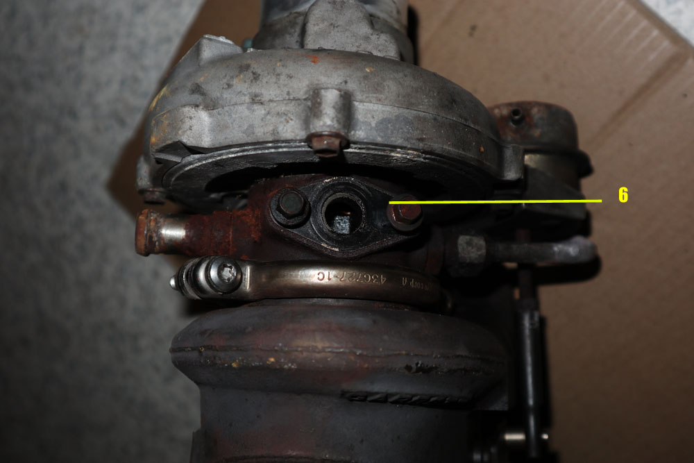 6 sieht nach Öleinlass oder -return in die Ölwanne aus, aber das kann ich rausfinden, da die Ölleitung noch am Motor hängt.