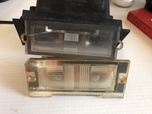 ach übrigens die Kennzeichenleuchten vom MG ZR / Rover 25 haben die selben Abmessungen was die Streuscheibe angeht, sind nur dahinter anders, ZR/25 gewinkelte Kontakte, MGF/TF gerade.