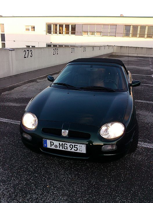 Warum? Auf der Suche nach einem bezahlbaren aber individuellen Sommerfahrzeug bin ich auf den MGF gestoßen. Meine Ex-Freundin hatte mal einen MGF der ersten Serie in klassischem British Racing Green, allerdings ohne weitere Sonderaustattung. Zwar machte der Kleine nach nur 4 Jahren schon gehörigen Ärger (defekte Alarmanlage und ZKD) aber insgesamt hat mich der MGF nachhaltig beeindruckt. Nach 6 Jahren Abstinenz ist nun der Virus wieder ausgebrochen und ich muß sagen, es gibt wohl wenige Autos aus den 90igern die auch heute noch bzw. schon wieder absolut geil aussehen wie der MGF. Mein jetziger Mk2 ist auch wieder British Racing Green, hat aber zusätzlich die originale Lederausstattung in schwarz, die großen 16 Zoll Blockspeichenräder und eine Klimaanlage. Und er hat gerade einmal 32 Tkm auf der Uhr und ist somit "eingefahren". Ich werde den Wagen nur im Sommer bewegen, so wie es der Vorbesitzer bisher auch gemacht hat. Ich habe natürlich auch über einen Alfa Spider bzw. eine Barchetta nachgedacht. Die Keilform des Alfas gefiel meiner Freundin nicht und die Barchetta ist ja im Grunde nur ein offener Fiat Punto der ersten Serie.