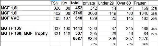 MGF: 11.422 Stück MGTF: 3.534 Stück ---------------------------- GERMANY total 14.956 Stück