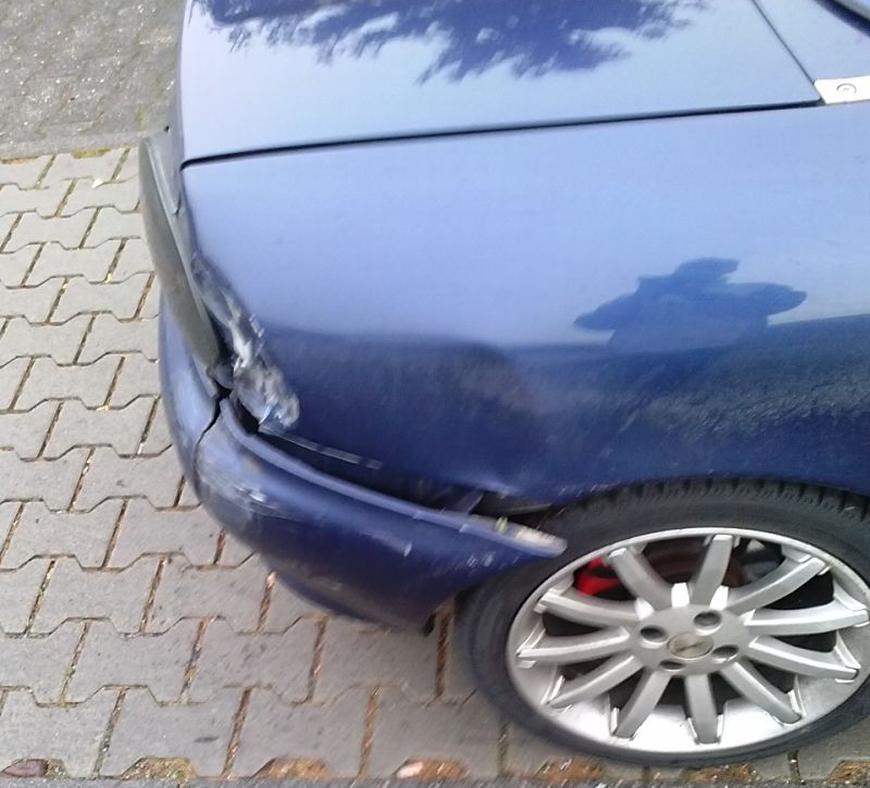 Die Beule im Seitenteil lässt mich nichts gutes erahnen... sie ist quasi von seitlich hinten nach vorne an dem Wagen hängen geblieben.. beim links abbiegen..