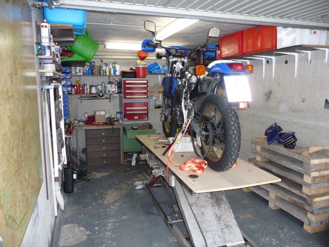 Habe mir dann auch noch eine Vorrichtung inkl. Brett gebastelt für den Motorradeinsatz.