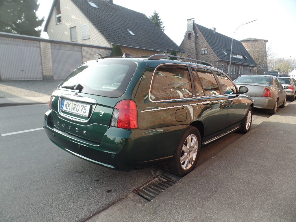 ... Mai, ääh, April. Nachdem der 45 Saloon meiner Gattin mangels Heckklappe etwas zu „umständlich“ wurde und ich eh immer auf die Gleiter stand, ist nun seit gestern ein 75 CDTi Tourer in Connoisseur Ausstattung im Hause. Okay, keine Ledersitze mehr, aber dafür so einiges andere. Gebaut am 1.9.2004 (EZ 2.11.2004) als der 25.000. 75 Tourer von allen (Jubiläums-Sondermodell sozusagen  ), mal wieder in HFF (und das ich, jajaja!), mit Zweizonen Klimaautomatik, Tempomat, Traktionskontrolle (abschaltbar  ) und so weiter und so fort. Für den Winter eine Standheizung statt kratzen.  Und natürlich mit Automatikgetriebe, wie sich das gehört. Und mit zu früh öffnendem Thermostat, wie scheinbar alle von den Dieseln  . Das Schiff hat 215tkm auf der Uhr, ist also gerade mal eingefahren, und hat ein ordentlich geführtes Serviceheft. DPF ist auch nachgerüstet, also grüne Plakette. Fährt sich einfach wunderbar, morgen wird er zugelassen. Dann gibt’s auch irgendwann Fotos. Dank auch an Thorsten, ohne den das alles nix geworden wäre! Ach so, und ein Rover 45 Facelift 4-Türer in X-Power Grey (oder auch Tempest Grey) 1.6 steht dann ab nächste Woche hier nutzlos rum. Ca. 155tkm, EZ 22.6.2004, VIN (für Forscher) SARRTCLMS5D639693, lustigerweise wird der in keinem Suchtool gefunden. Ist ein Ex MG-Rover Deutschland Pressefahrzeug, ich bin der 4. Besitzer. Good points: - Vollleder mit Sitzheizung vorn - elektr. Glasschiebedach - 4 x EFH - Klimaautomatik (die gleiche wie im Pagani Zonda  ) - 8-fach bereift - Radio mit USB und Bluetooth-FSE - Kopfdichtung, Zahnriemen usw. vor 1,5 Jahren bei ca. 125tkm neu - Bremsen vorne letztes Jahr neu (Scheiben und Beläge) - beide Gelenkwellenmanschetten radseitig neu Bad points: - Auspuff undicht - Klima Undicht (neue Dichtringe Original habe ich liegen) - Bremsen hinten (Trommeln) müssen gemacht werden - an den Türverkleidungen geht teilweise die Bespannung ab - Tennisballgroße Beule oben am linken vorderen Kotflügel - TÜV läuft im Juni ab Entweder jemand hier erbarmt sich seiner oder ich pack den nächste Woche erstmal weg und mach ihn irgendwann fertig. Kommenden Freitag muss ich den abmelden.