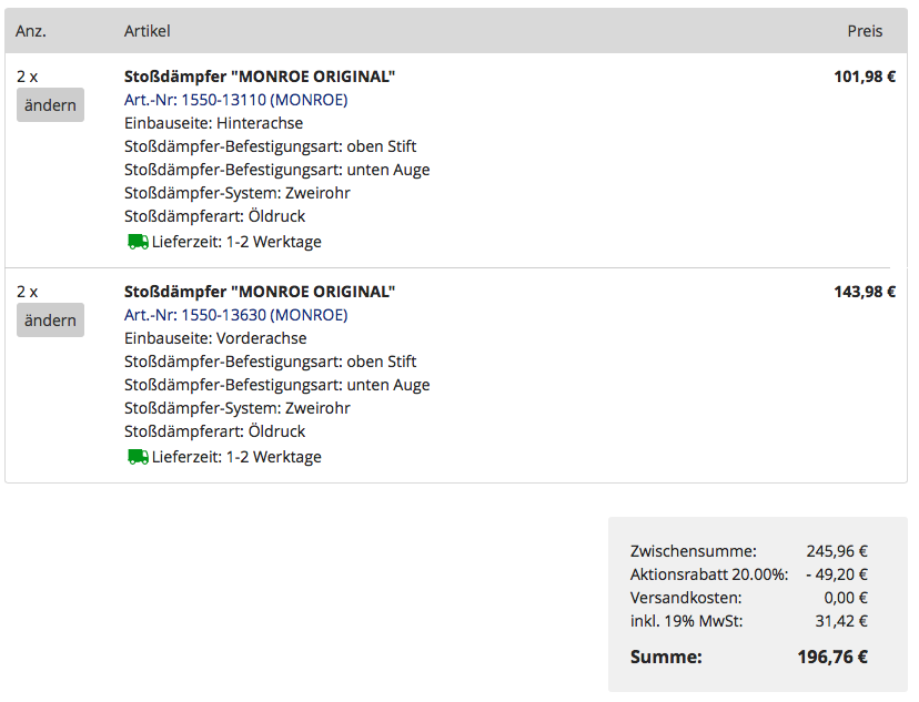 Re: 20% Aktion auf Monroe bei kfzteile24