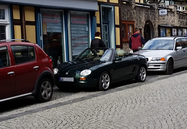 Ein sehr schöner MG F stand gestern, 27.9. in Stolberg im Harz. Wir waren dieses Mal nicht mit unseren MG Freunden aus Braunschweig, sondern zum Wandern in Stolberg und somit zu Fuß unterwegs. Leider kamen die Besitzer erst zum Fahrzeug zurück, als wir schon zu weit entfernt waren, sonst hätten wir uns noch austauschen können.